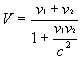On constate facilement que lorsque v1 et v2 sont très petits par rapport à c, les deux formules sont équivalentes. Mais on constate également que si l'une des vitesse est égale à c, alors, quelle que soit la valeur de l'autre, leur addition donne à nouveau c. Ceci implique que la vitesse de la lumière est une limite absolue au déplacement des objets matériels.